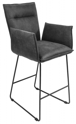 Larson Grey Suede Bar Stool with Arms (Sold in Pairs)