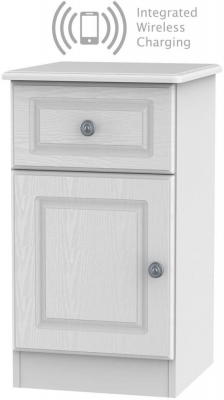 Pembroke White 1 Door 1 Drawer Bedside Cabinet with Integrated Wireless Charging Right Hand Side