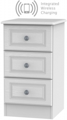 Pembroke White 3 Drawer Bedside Cabinet with Integrated Wireless Charging