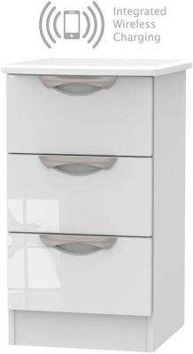 Camden 3 Drawer Bedside Cabinet with Integrated Wireless Charging – High Gloss White