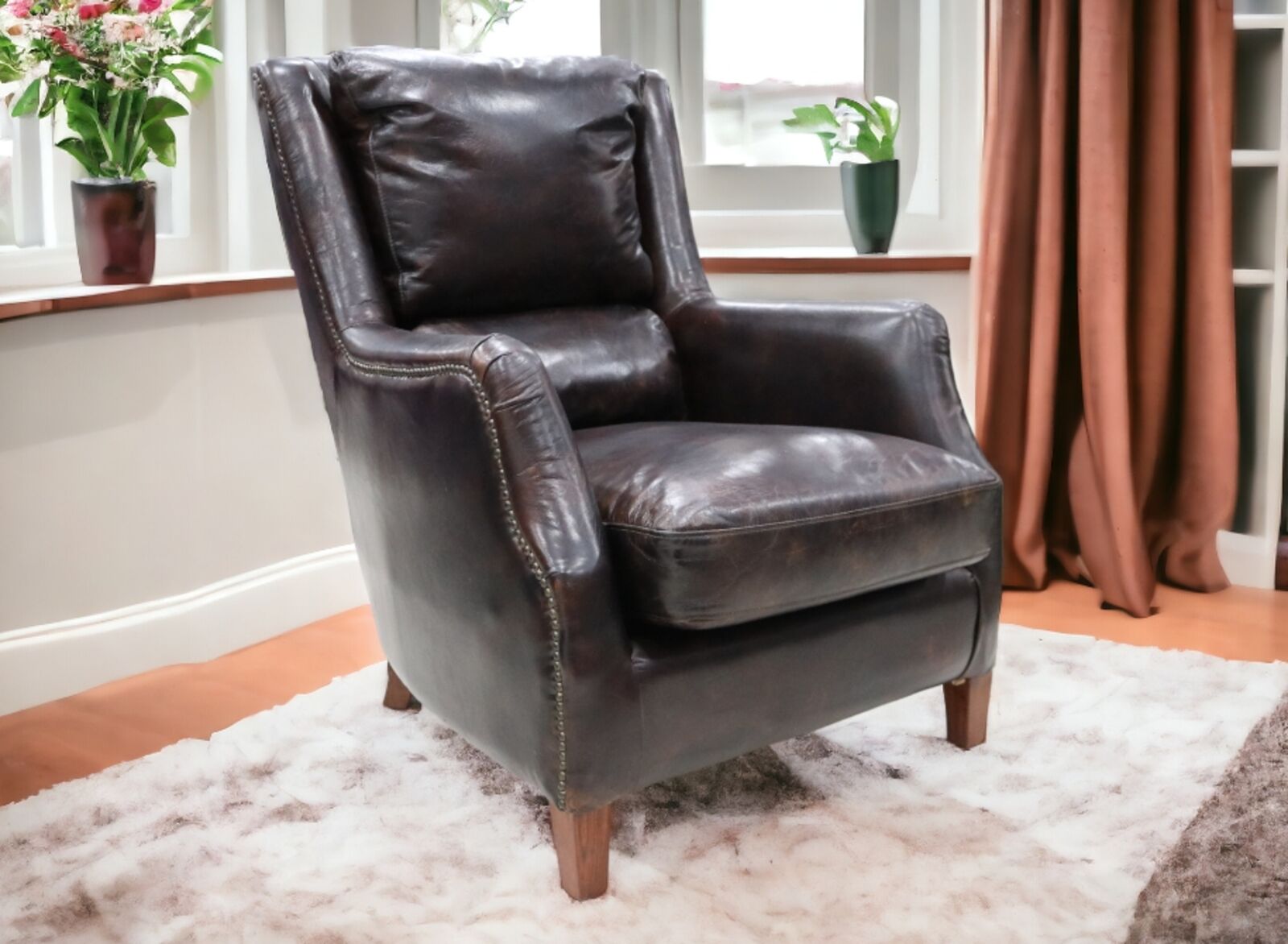 View at designersofas4u.co.ukCuban Cigar Vintage Tobacco Brown Distressed Leather Wingback Chair