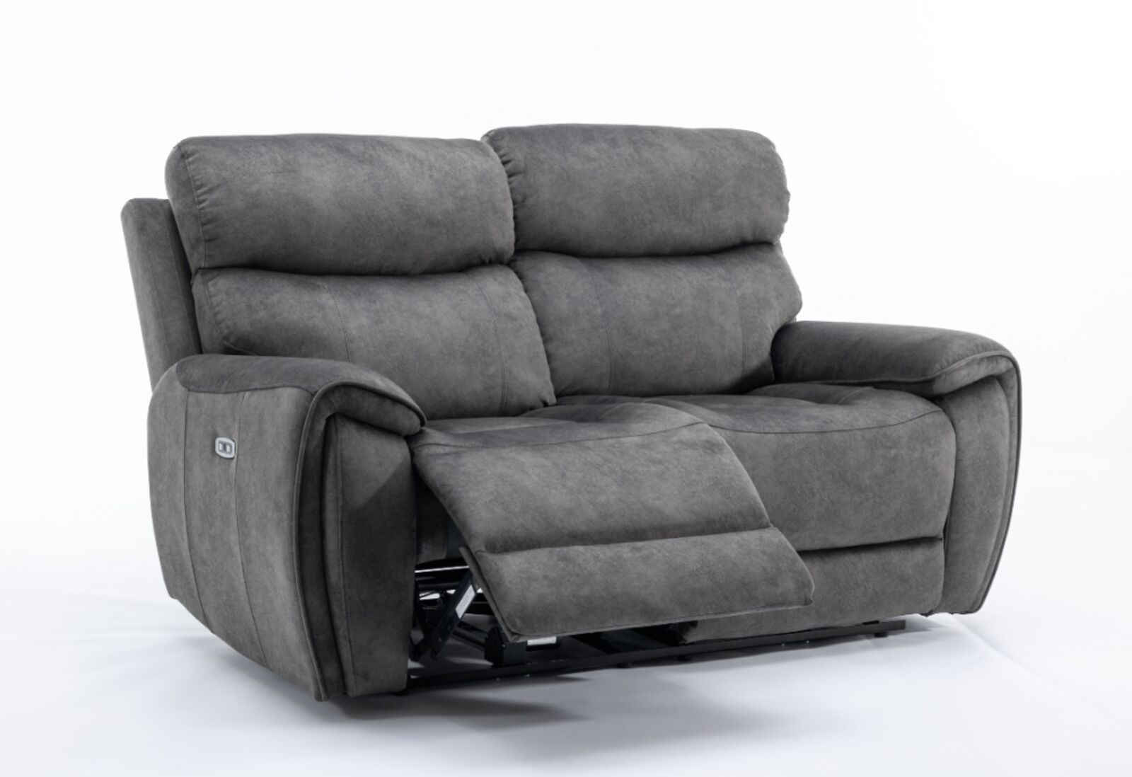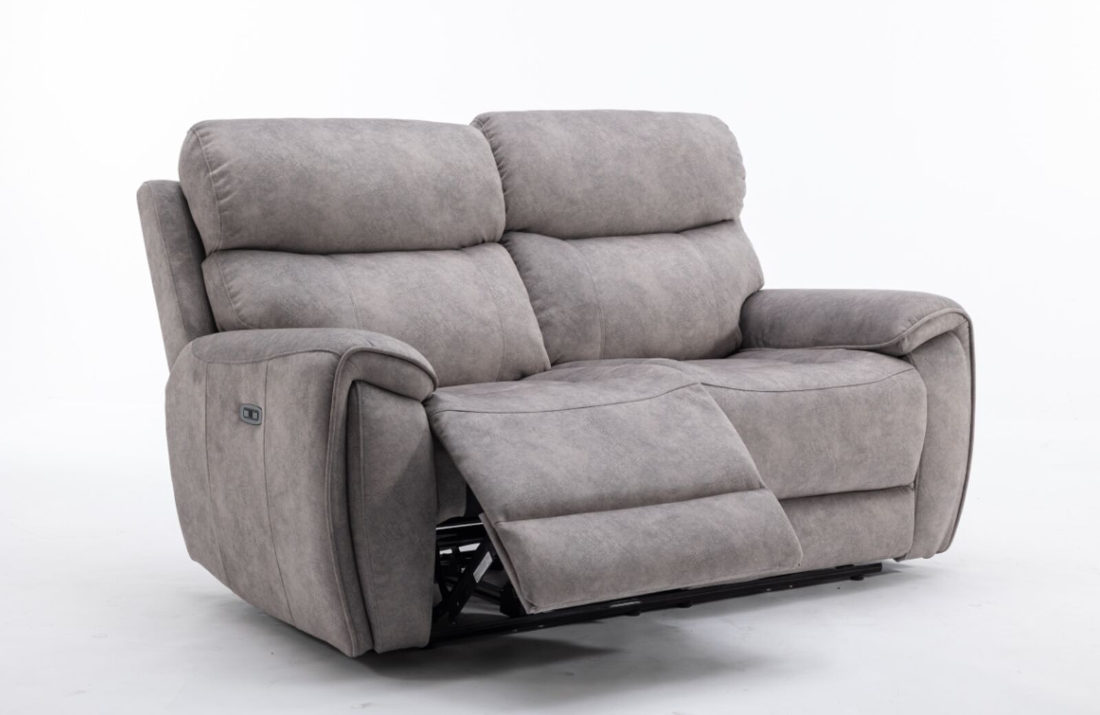 View at designersofas4u.co.ukDino 2 Seater Electric Reclining Cinema Sofa Silver Fabric
