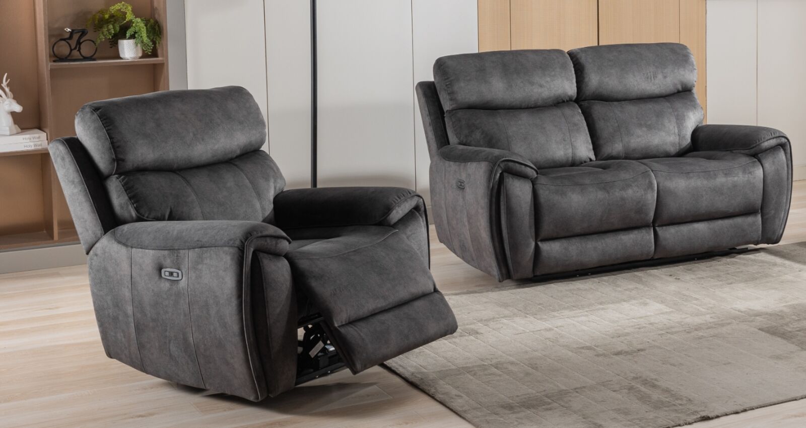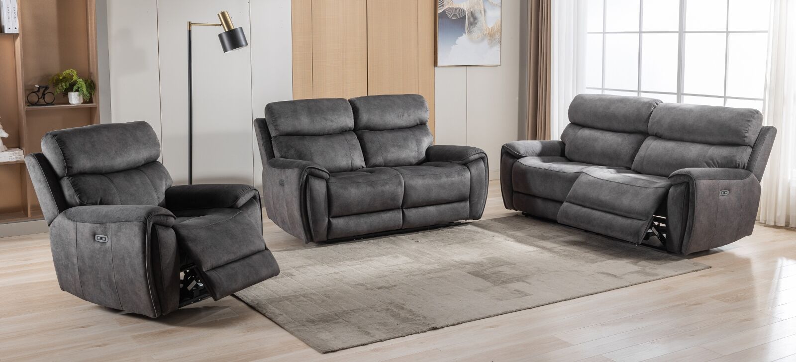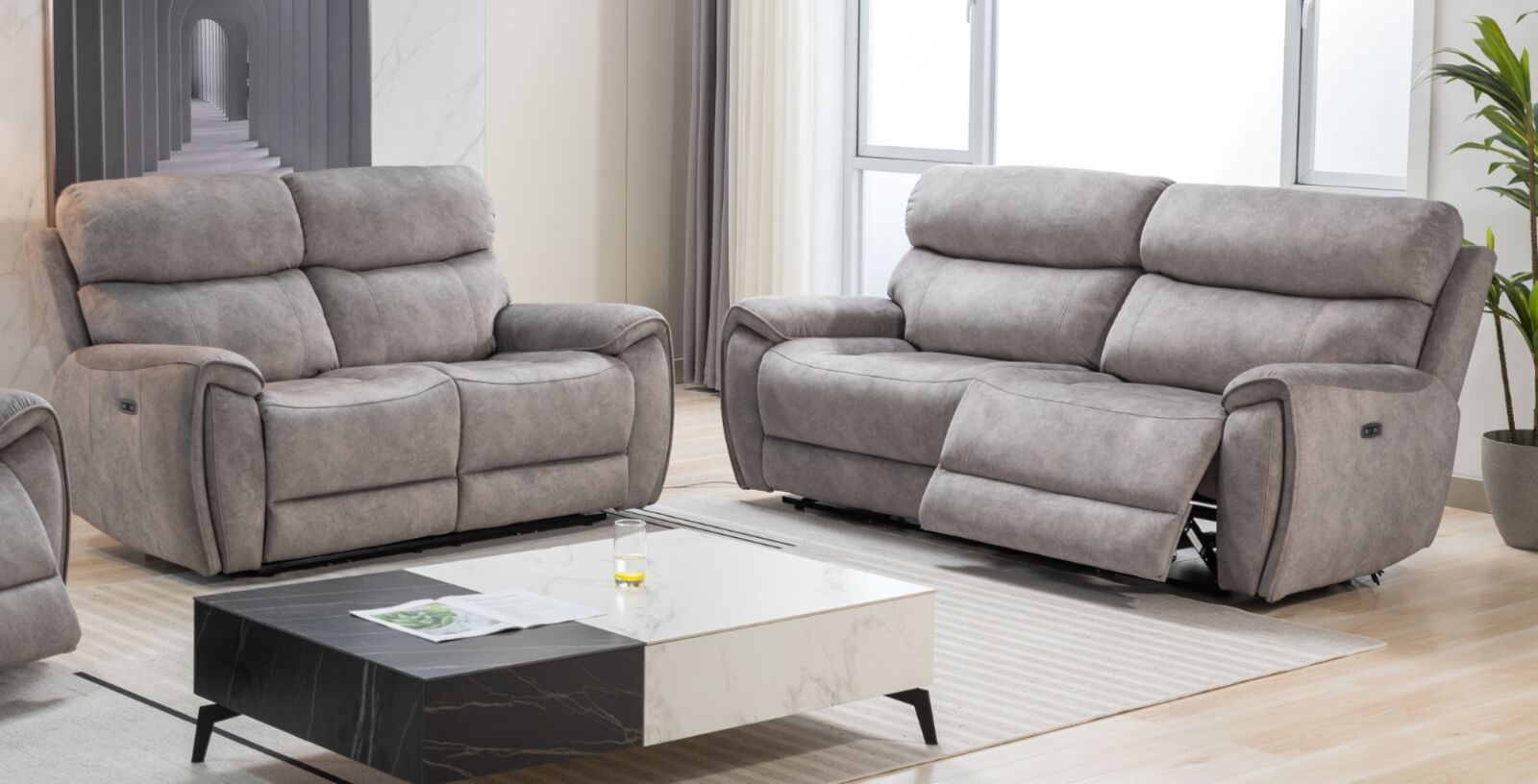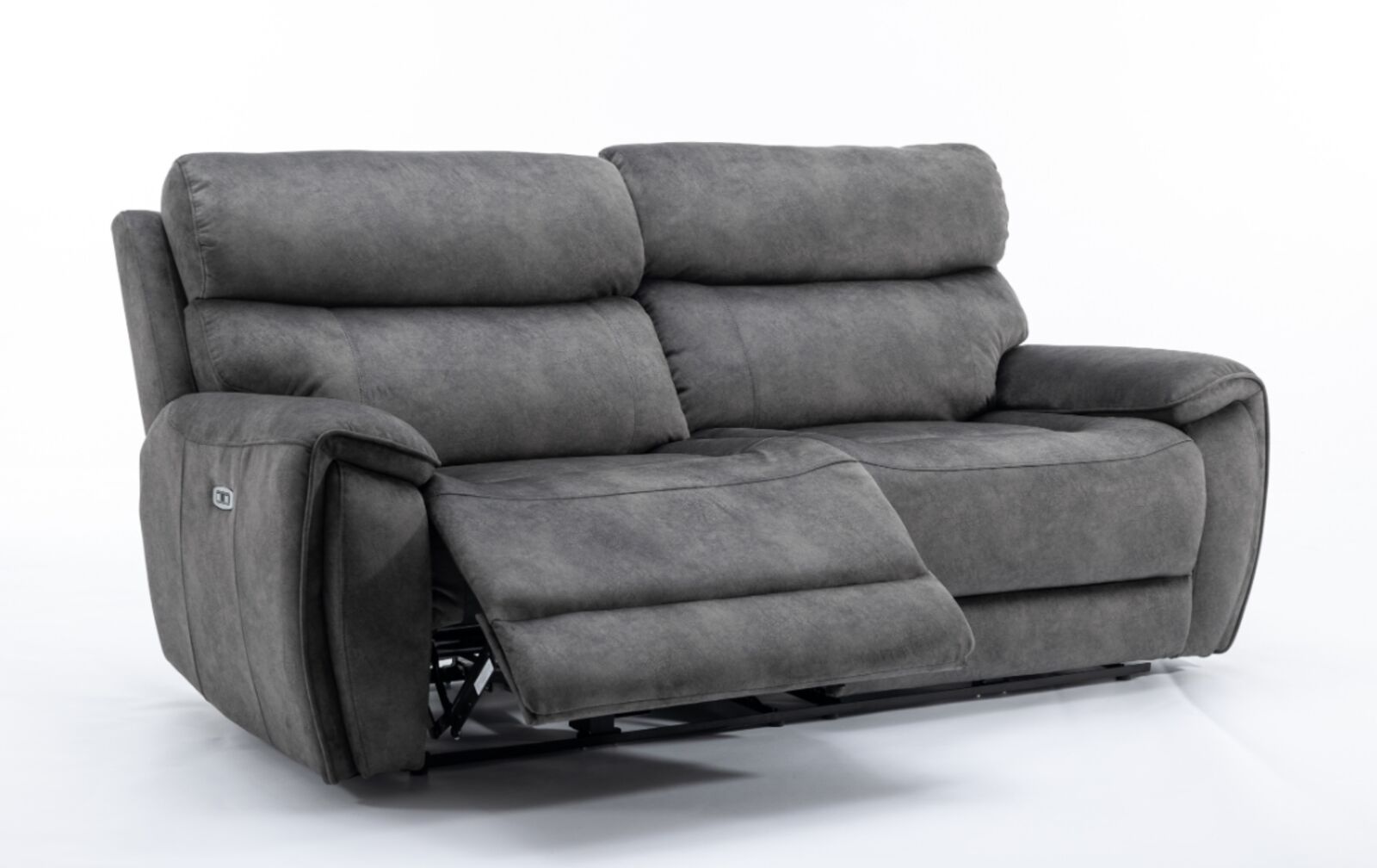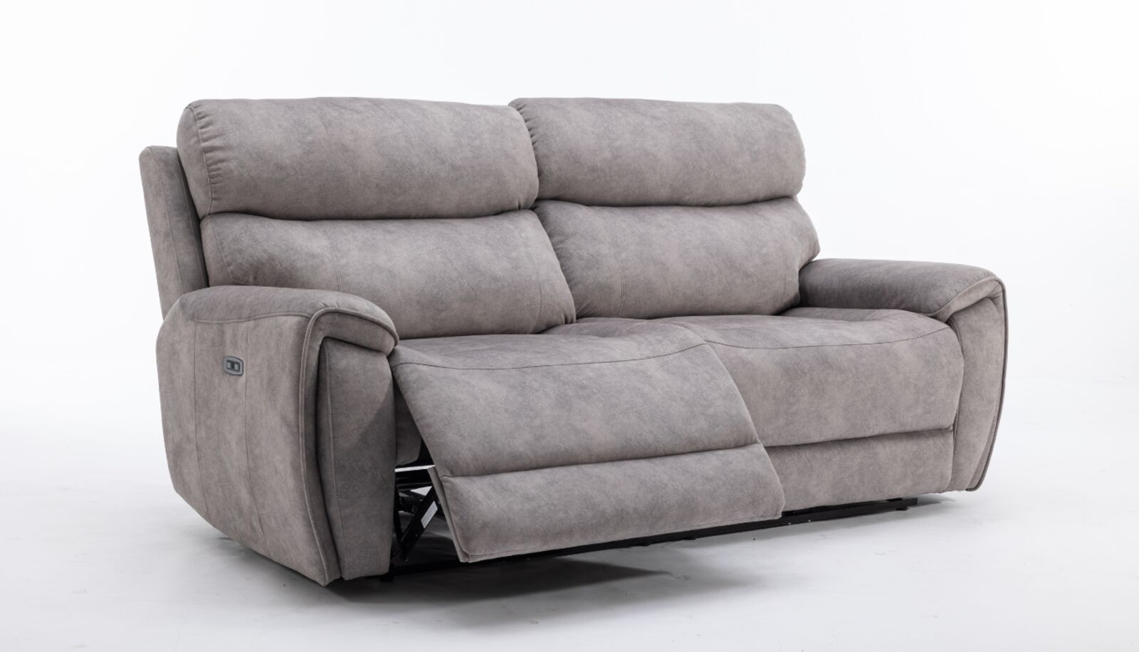 View at designersofas4u.co.ukDino 2+1 Seater Electric Reclining Cinema Sofa Suite Silver Fabric