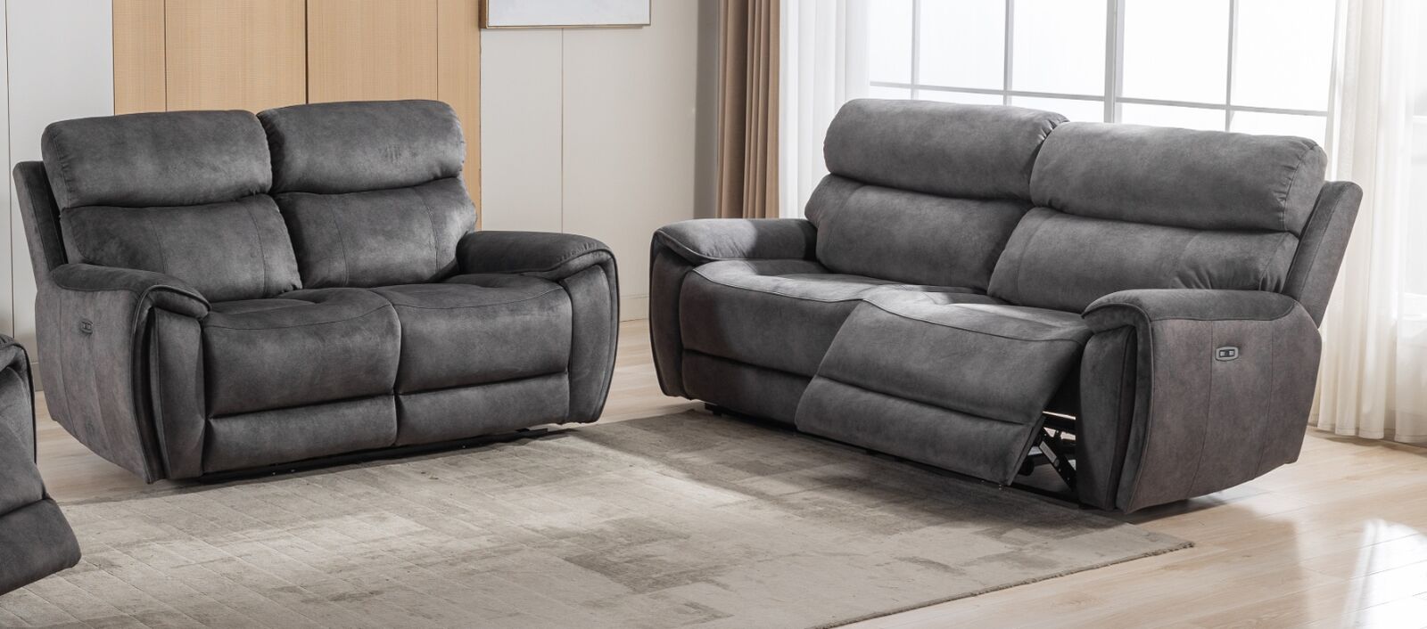 View at designersofas4u.co.ukDino 3+2 Seater Electric Reclining Cinema Sofa Suite Silver Fabric