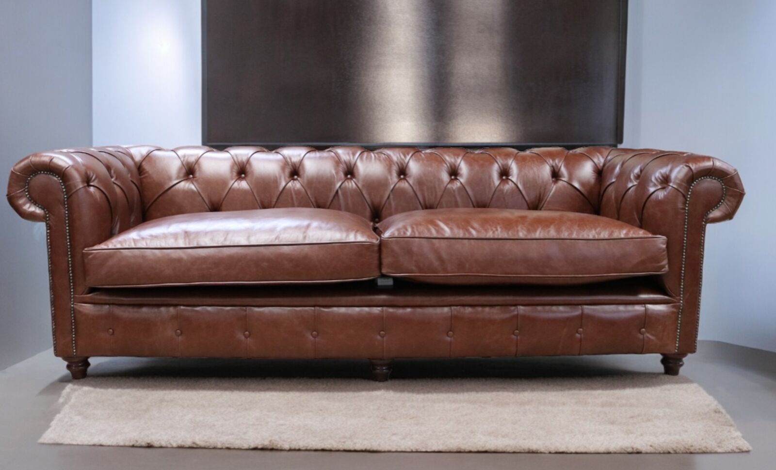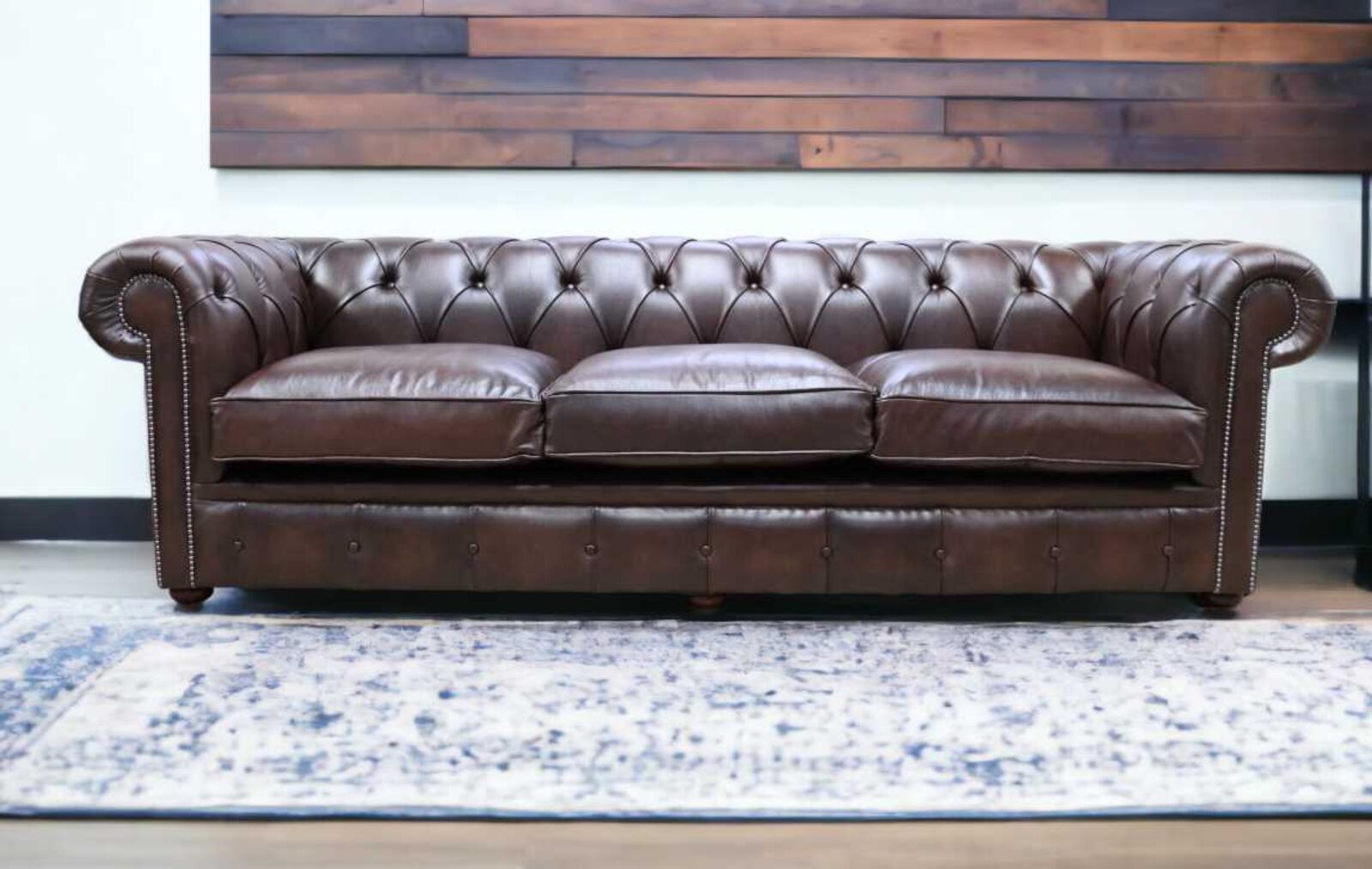 View at designersofas4u.co.ukDuke Chesterfield 4 Seater Sofa Old English Hazel Leather