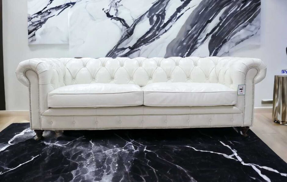 View at designersofas4u.co.ukEarle Grande Chesterfield Vintage 3 Seater Nappa White Real Leather Sofa