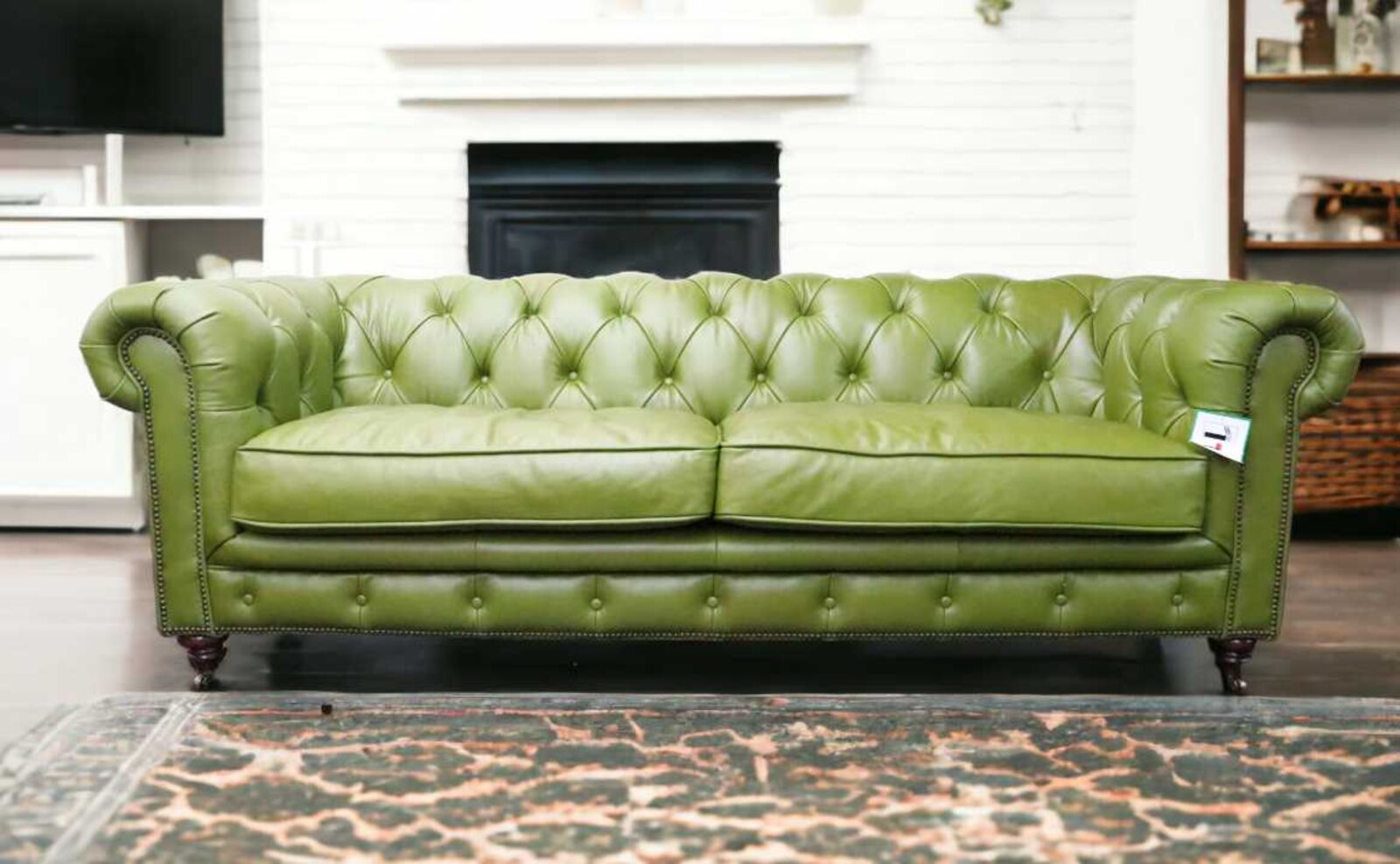 View at designersofas4u.co.ukEarle Grande Chesterfield Vintage 3 Seater Nappa Olive Green Real Leather Sofa