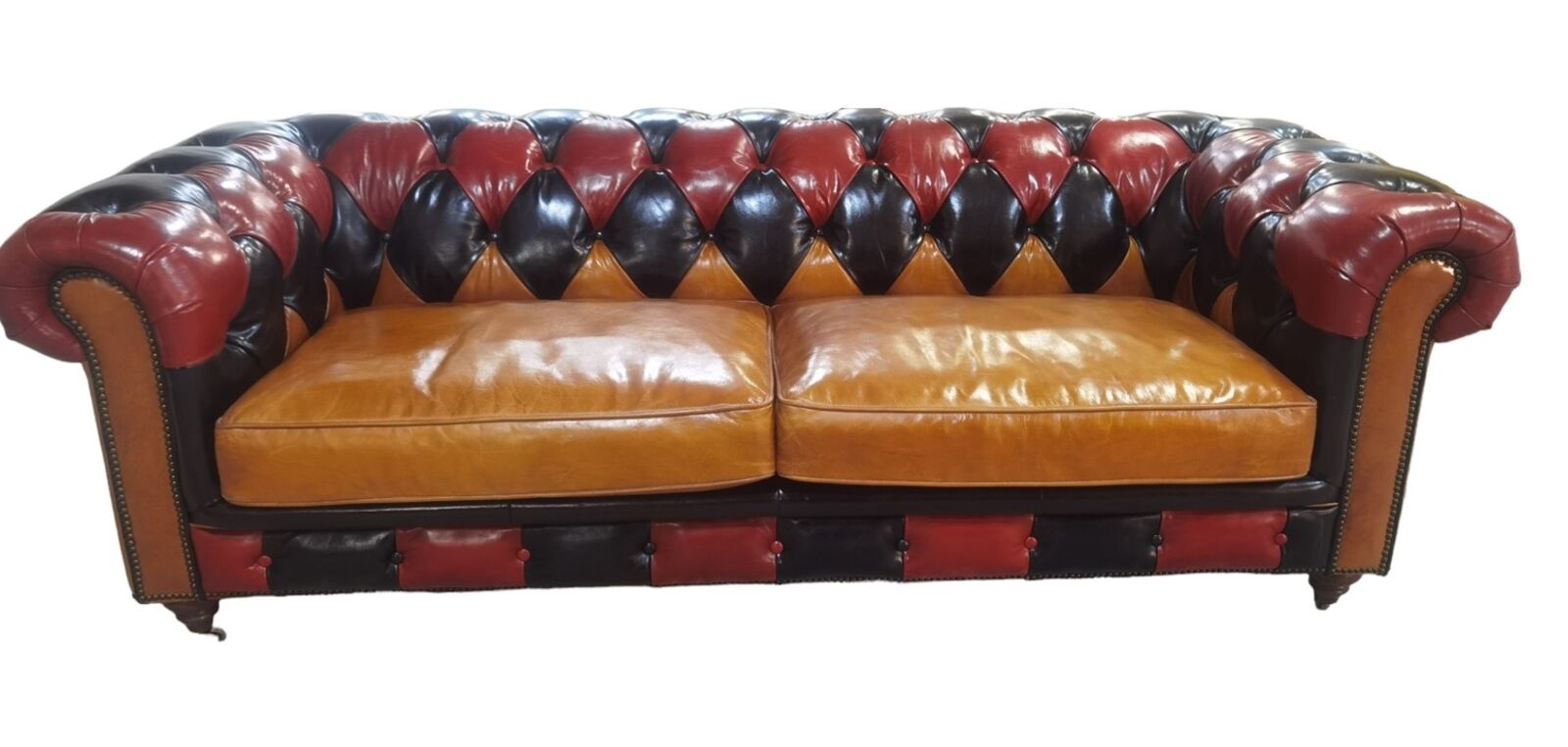 View at designersofas4u.co.ukEarle Grande Patchwork Chesterfield 3 Seater Vintage Real Leather Sofa