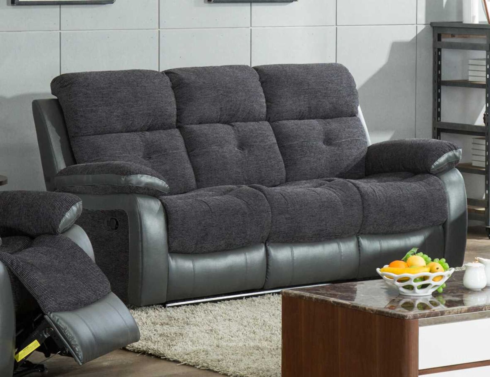 View at designersofas4u.co.ukHolden 3 Seater Sofa Reclining Dark Grey Fabric And Leather