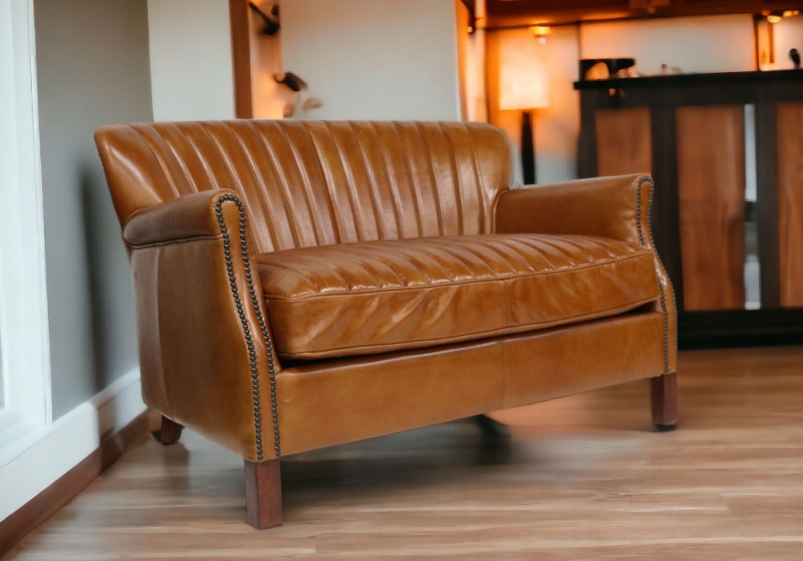 View at designersofas4u.co.ukMontrose Distressed Vintage Tan Leather 2 Seater Settee Sofa