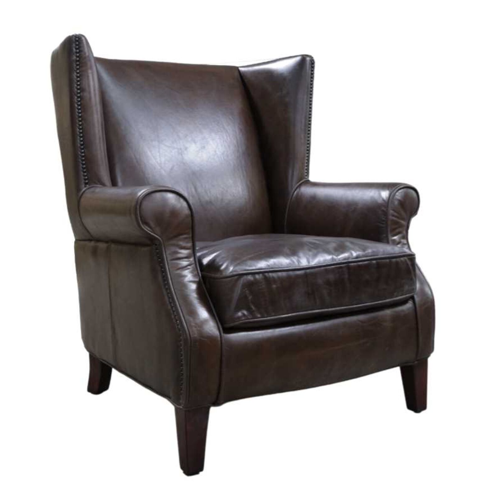 View at designersofas4u.co.ukOberon Vintage High Back Distressed Brown Leather Armchair