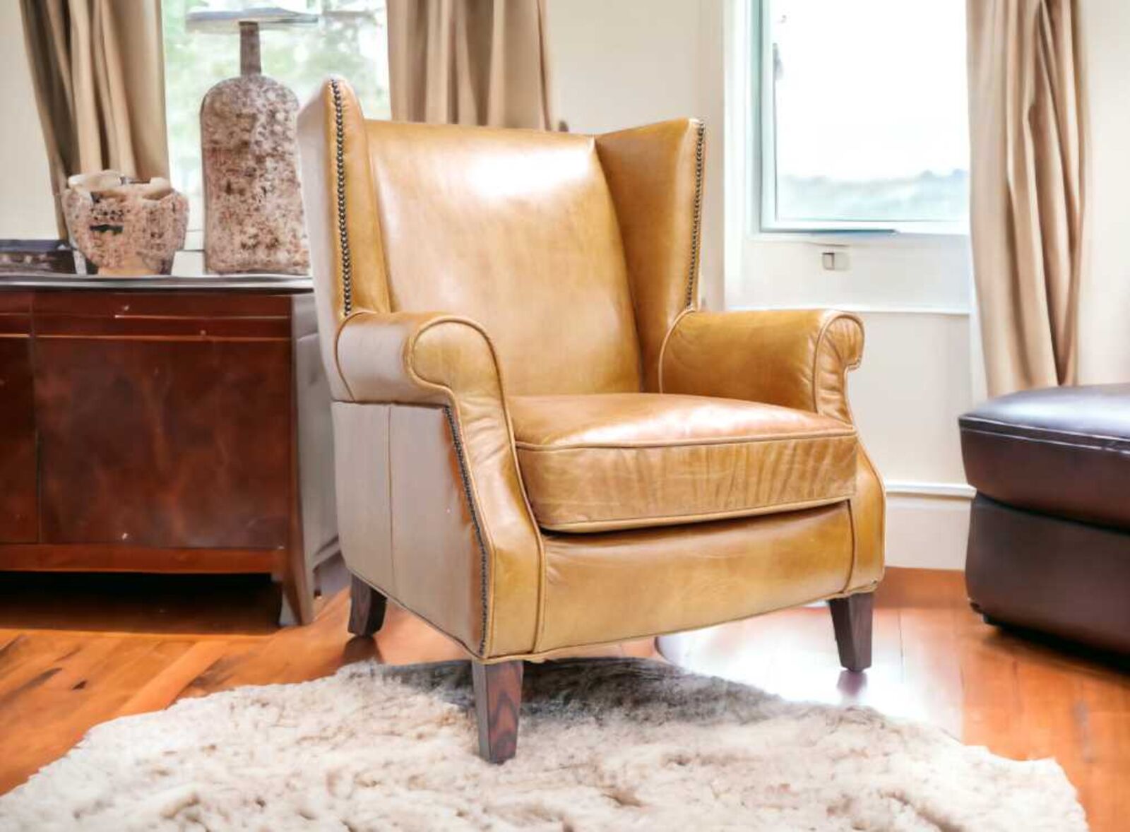 View at designersofas4u.co.ukOld English Aniline Tan Leather Chesterfield Balmoral Armchair Buttoned Seat | DesignerSofas4U