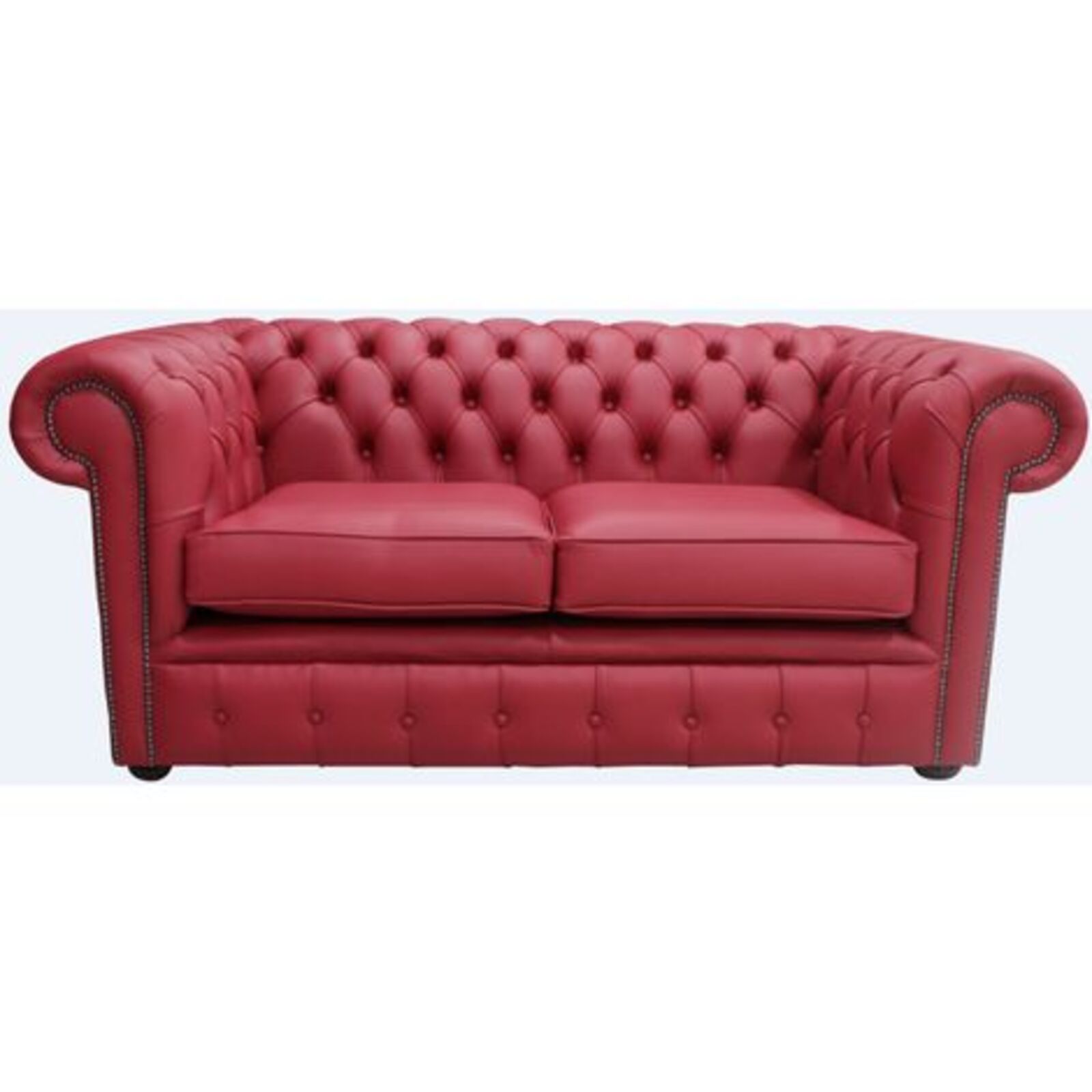 View at designersofas4u.co.ukChesterfield 2 Seater Shelly Poppy Red Leather Sofa Offer