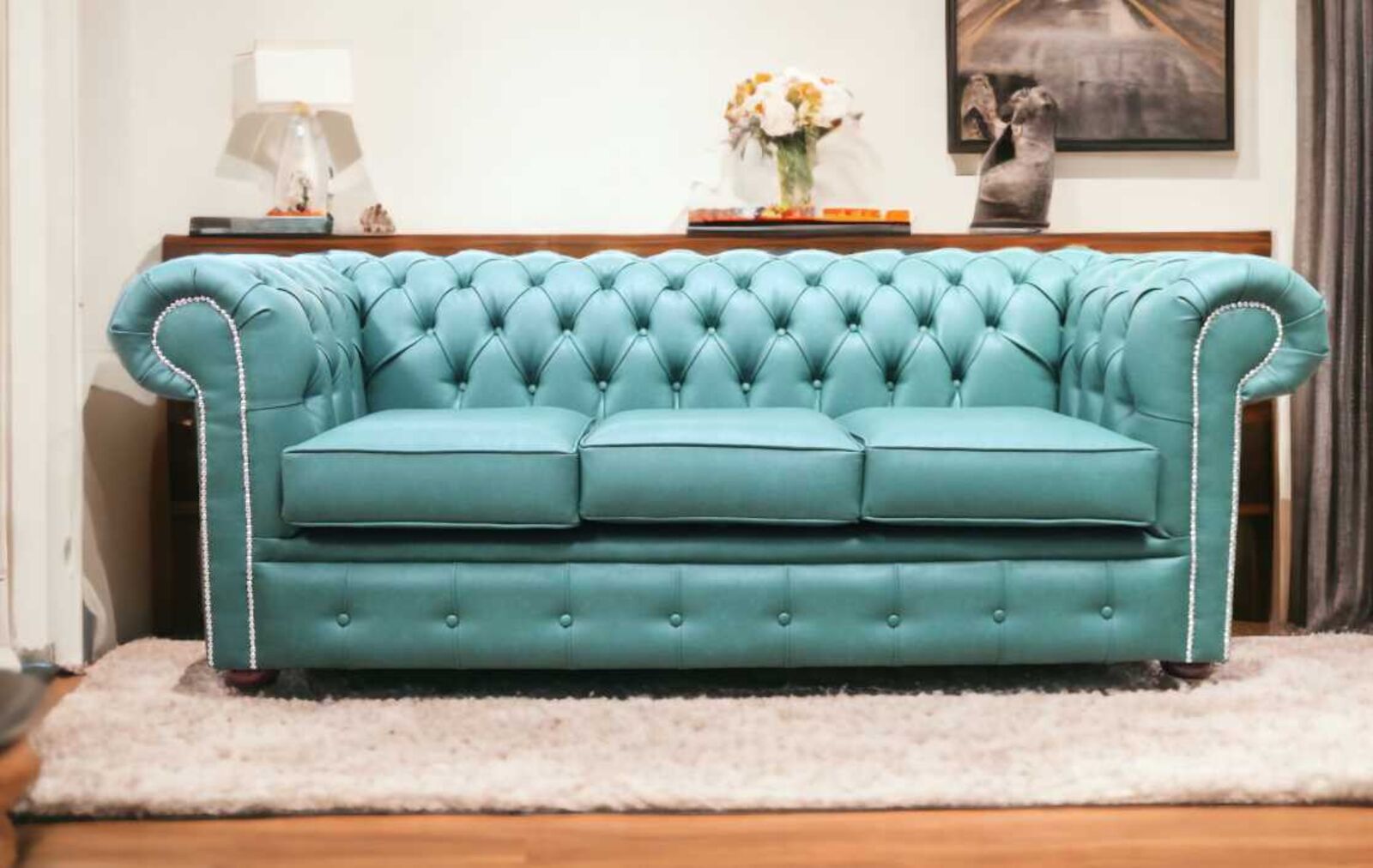 View at designersofas4u.co.ukChesterfield 3 Seater Infinity Racing Green Faux Leather Sofa Offer
