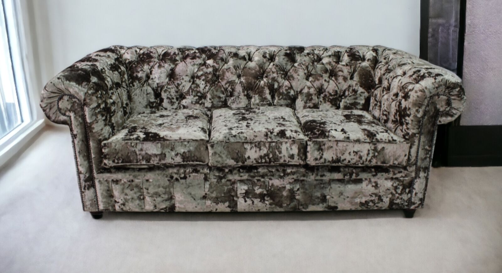 View at designersofas4u.co.ukChesterfield 3 Seater Settee Modena Steel Velvet Sofa Offer
