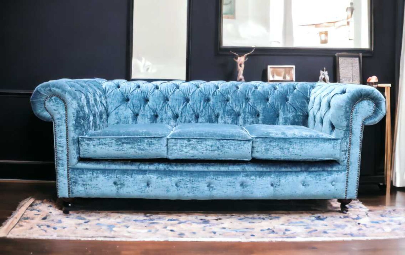View at designersofas4u.co.ukChesterfield 3 Seater Settee Modena Delft Blue Velvet Sofa Offer