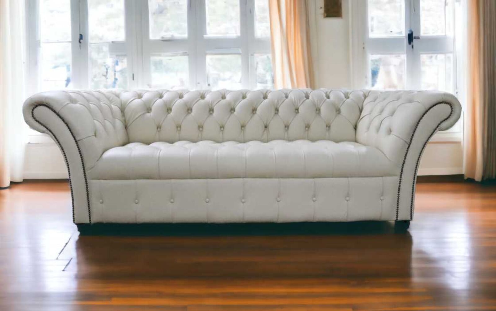 View at designersofas4u.co.ukChesterfield Balmoral 3 Seater Buttoned Seat Sofa Settee Cream Real Leather