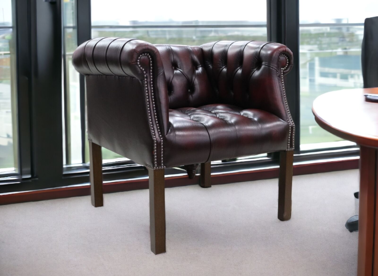 View at designersofas4u.co.ukChesterfield Devon Tub Chair Buttoned Seat Antique Oxblood Leather