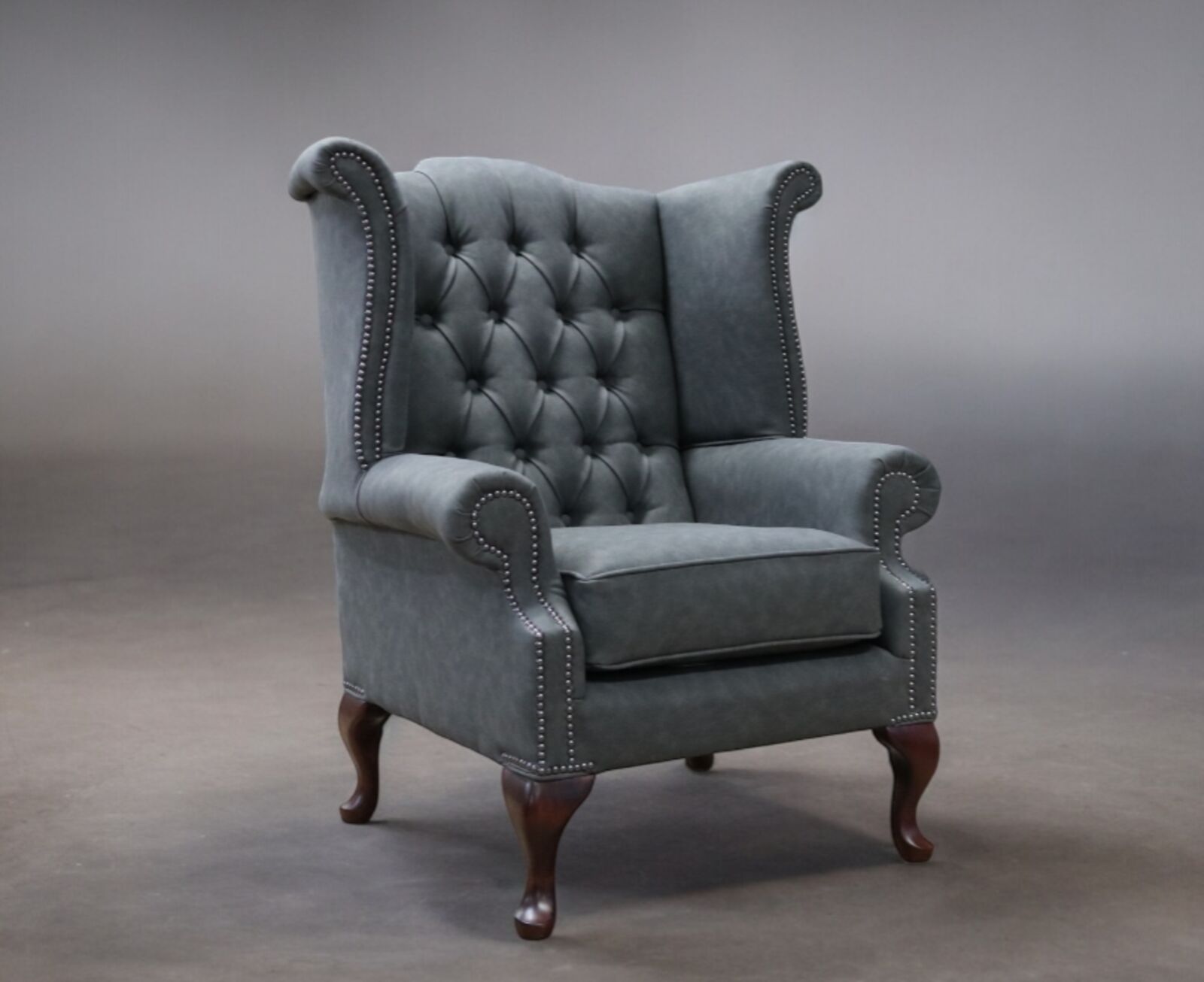View at designersofas4u.co.ukChesterfield Handmade Queen Anne Wing Chair Charcoal Grey Leather