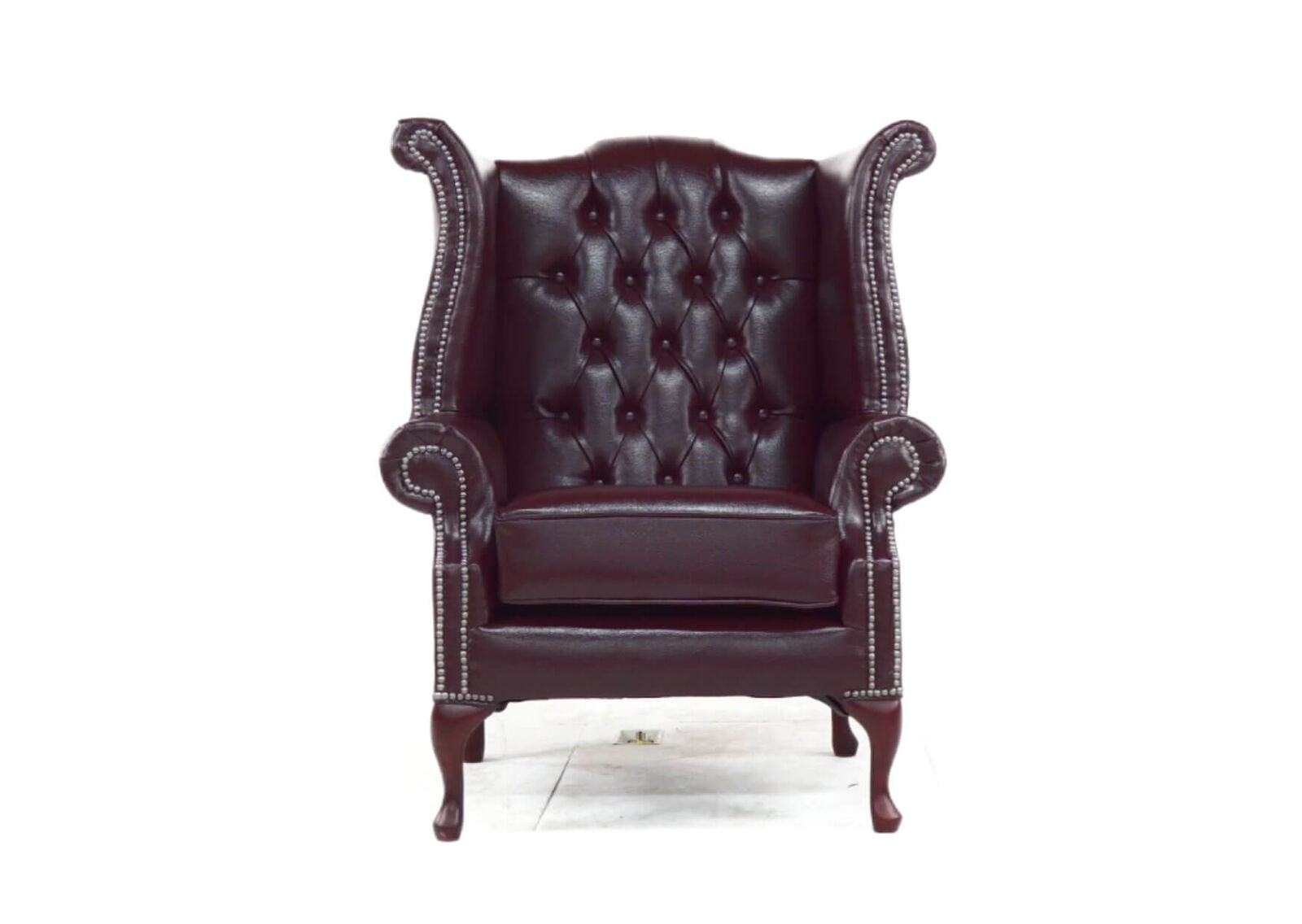 View at designersofas4u.co.ukChesterfield Handmade Queen Anne Wing chair Bonded Burgundy Leather