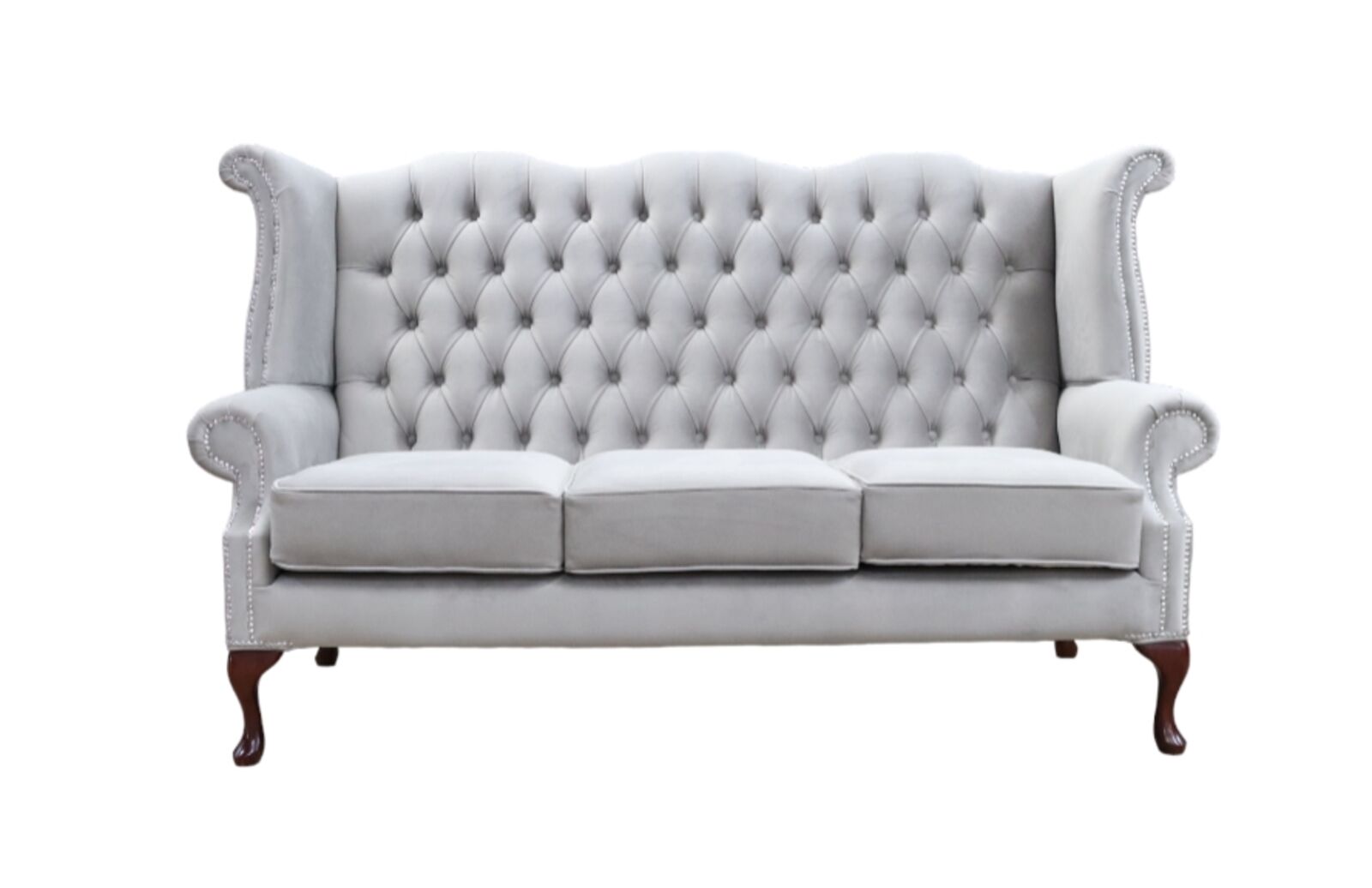 View at designersofas4u.co.ukChesterfield Queen Anne 3 Seater High Back Wing Sofa Chair Amalfi Fossil Grey Velvet