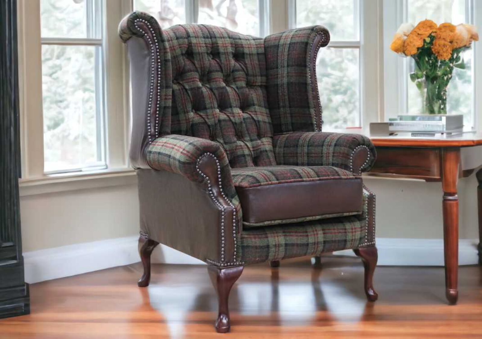 View at designersofas4u.co.ukChesterfield Queen Anne High Back Wing Chair Glencoe Natural Stag Fabric