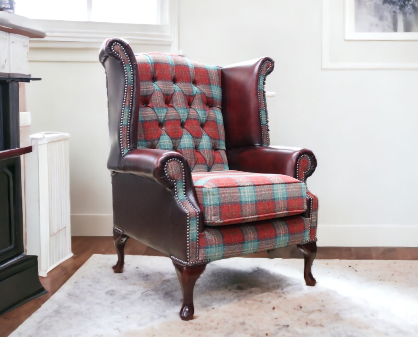 View at designersofas4u.co.ukChesterfield Queen Anne High Back Wing Chair Antique Oxblood Real Leather