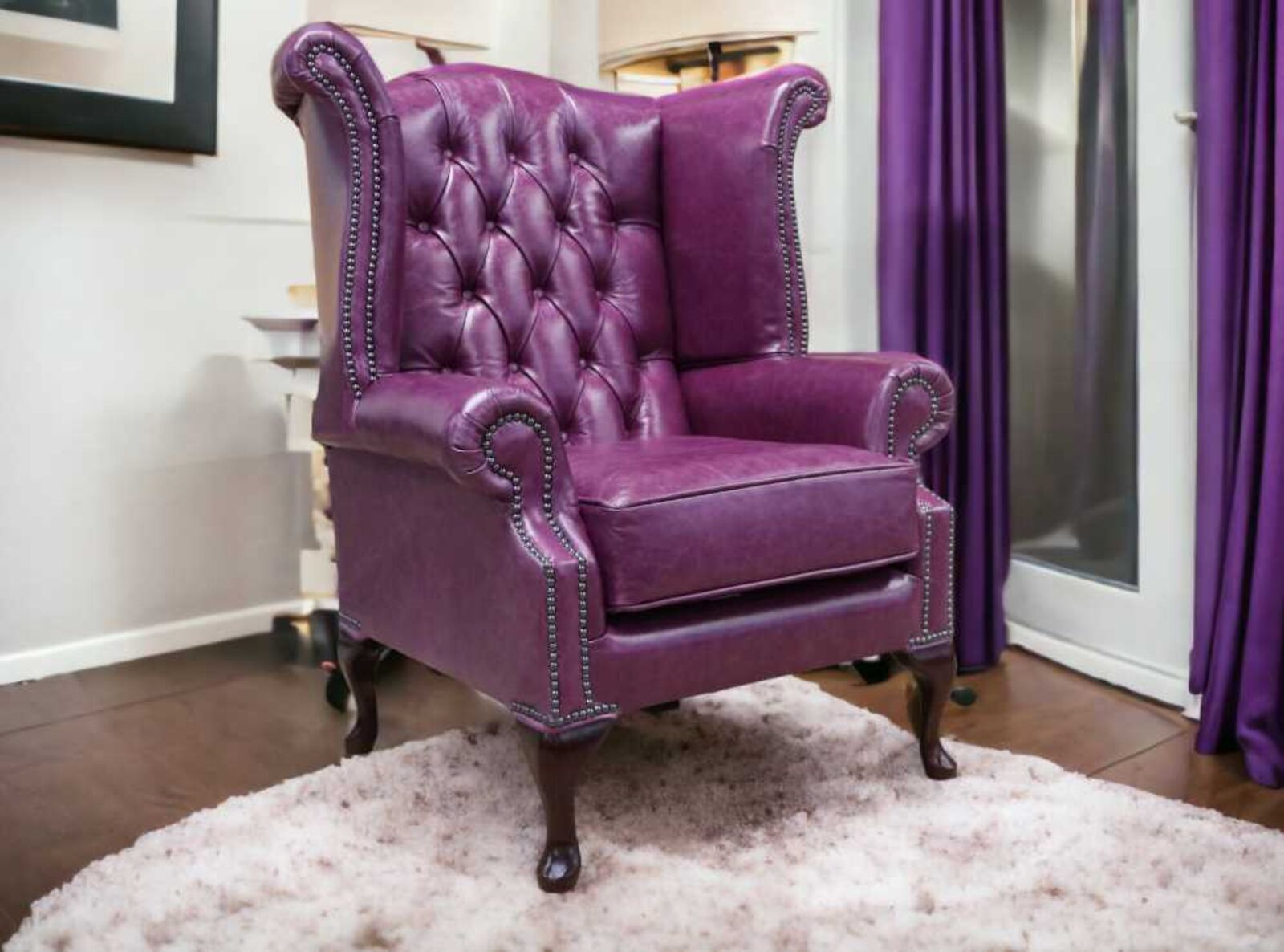 View at designersofas4u.co.ukChesterfield Queen Anne High Back Wing Chair Malta Boysenberry Purple Velvet Fabric