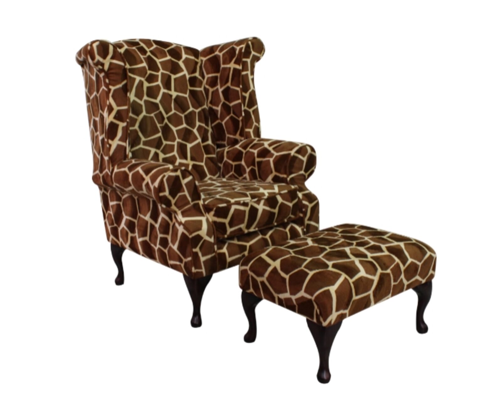 View at designersofas4u.co.ukChesterfield Saxon Queen Anne High Back Wing Chair Big Giraffe + Footstool Animal Print