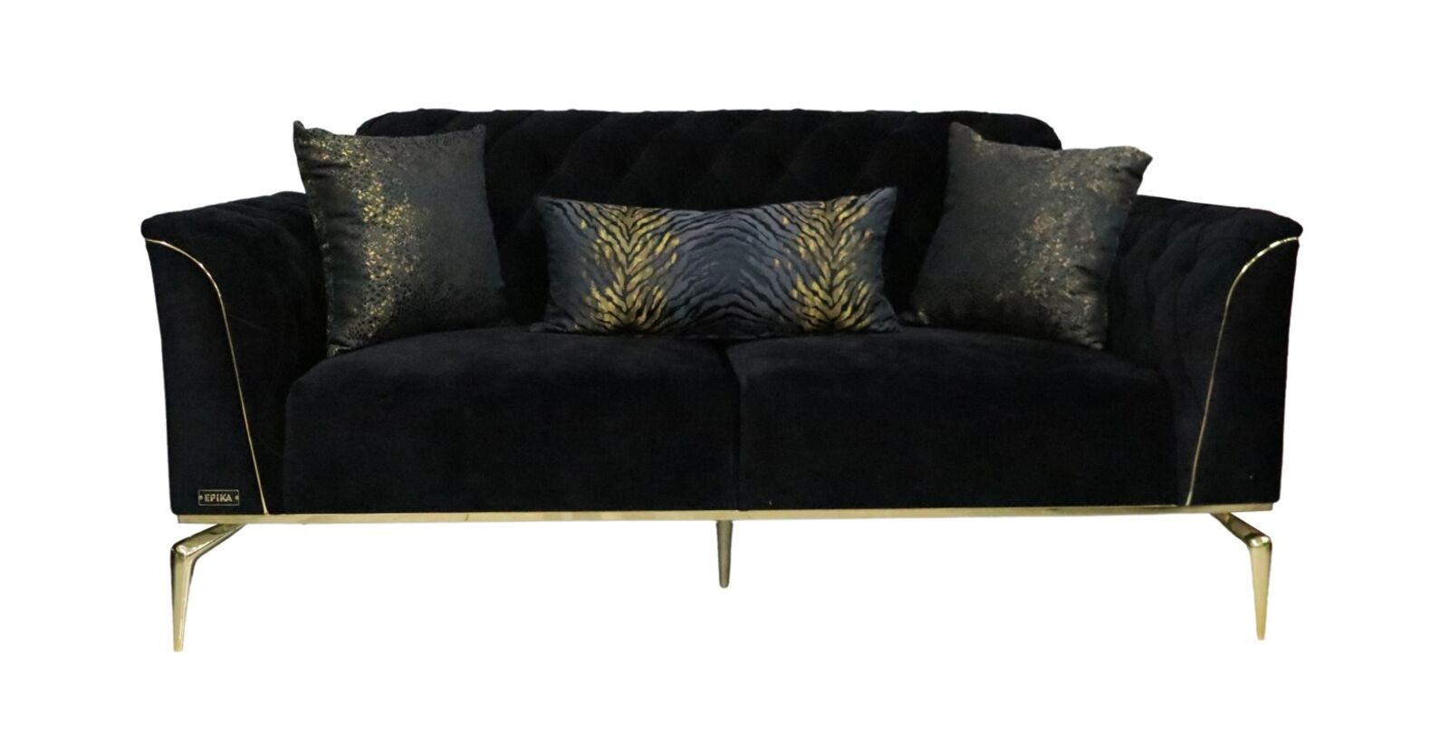 View at designersofas4u.co.ukChesterfield Tulip 2 Seater Black Fabric Designer Sofa Settee Gold Trim