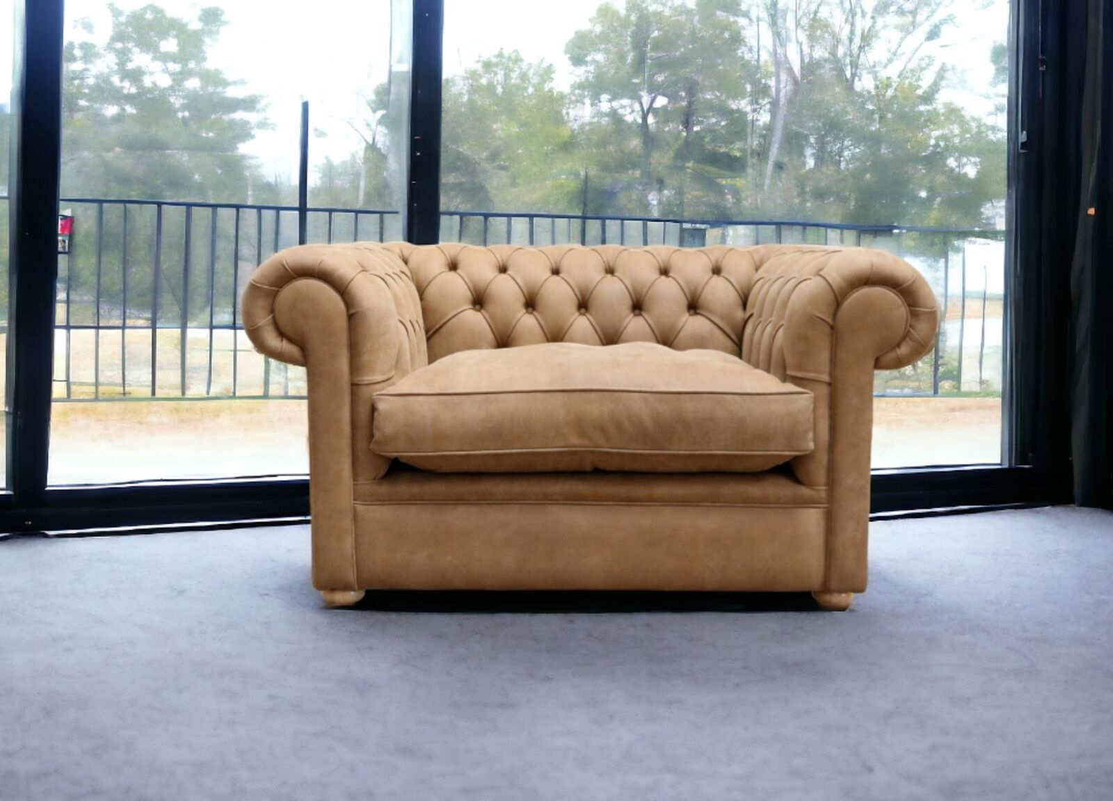 View at designersofas4u.co.ukChesterfield XL Cuddler Alfie Low Back Club Armchair Brunel Light Tan Leather